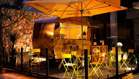 O Yellow Trailer foi estilizado a là Clos. Outra exclusividade, que só será encontrada na casa, é o serviço em taça de Veuve Clicquot Brut em garrafa Magnum e os clientes serão presenteados com uma exclusiva “flute” amarela Veuve Clicquot.