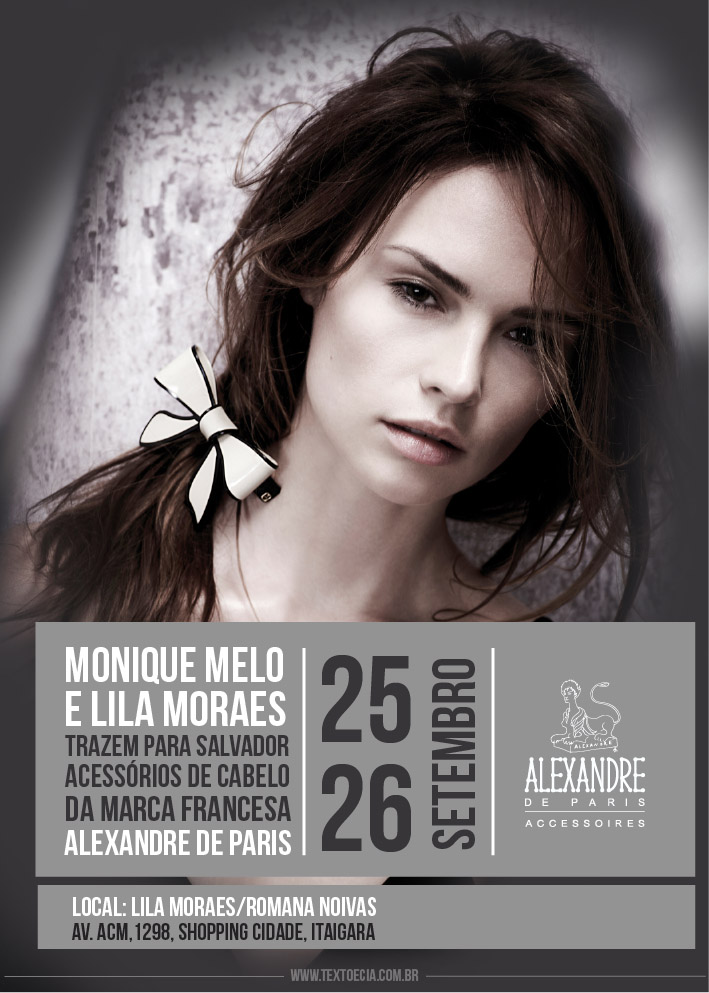 E por falar em eventos de primeira , a jornalista Monique Melo - junto ás marcas Lila Moraes e Romana Noivas, recebe amanhã convidados de peso para lançar os acessórios de cabelo Alexandre de Paris. Penteados com toque de sofisticação e charme.