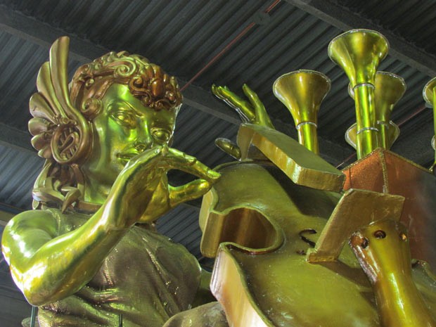 A Orquestra Sinfônica vai desfilar no carro decorado com instrumentos musicais, em enredo em homenagemao maestro Isaac Karabtchevsky (Foto: Alba Valéria Mendonça/ G1)