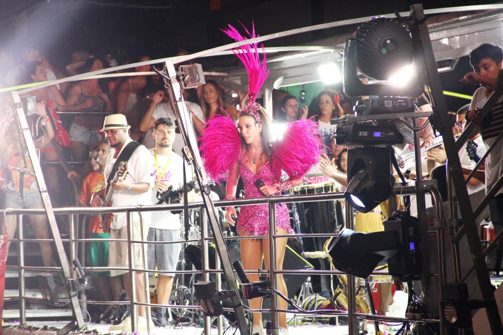 A diva Ivete Sangalo passou pela Ondina irradiando beleza e simpatia. Toda vestida de rosa, com direito a muita pedraria e penas de faisão, Ivete passou arrastando uma multidão com o bloco Cerveja & Cia. Cantando sua música “Pra Frente” e “Gostava tanto de você”, de Tim Maia, a belíssima cumprimentou os foliões do Camarote Salvador e ainda brincou com o Homem Estátua, uma das atrações do camarote.