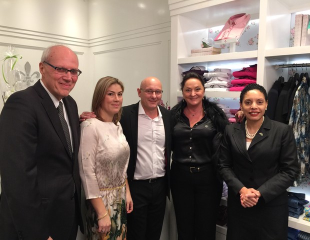 Marcos Pinta Gama (embaixador do Brasil na Suécia), Adriana de Luque, Miguel de Luque, Sônia Regina Hess de Souza (presidente da marca) e Elisa Sohlman (Foto: Reprodução)
