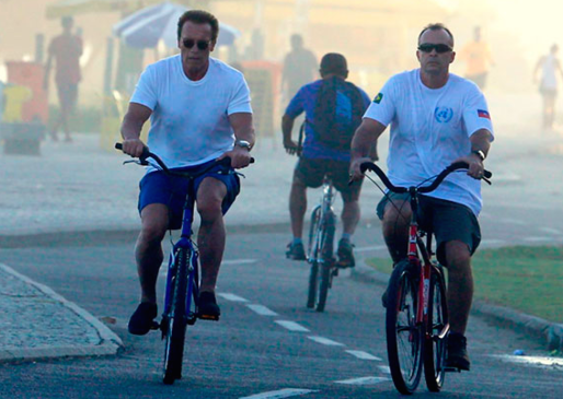 Arnold, já no Brasil, aproveita uma voltinha de bicicleta antes de pegar no batente do Arnold Classic Brasil 2015 (Foto: Reprodução)