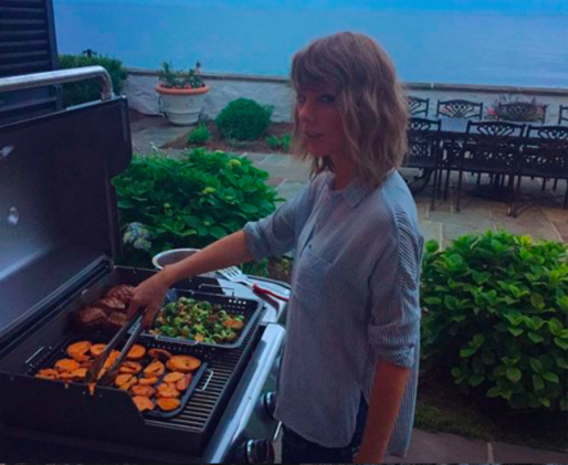Para fechar, viemos com um click da web de Taylor Swift estabelecendo exatamente o mood de um sábado! Churrasco é sempre uma boa pedida!