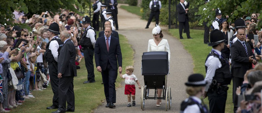 A princesa Charlotte foi batizada em Sandringham, no condado de Norfolk, numa cerimônia com a presença da rainha Elizabeth II e de outros 20 membros da família real na pitoresca Igreja de Santa Maria Madalena, mesma capela onde a princesa Diana, sua avó paterna, recebeu o batismo, em 1961. William e Kate têm uma casa de campo em Sandringham e foram andando até a igreja com os filhos.