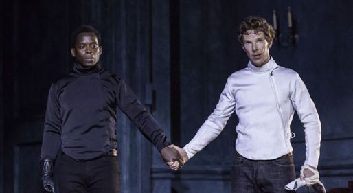 Kobna Holdbrook-Smith (Laertes) e Benedict Cumberbatch (Hamlet) (Foto: Reprodução)