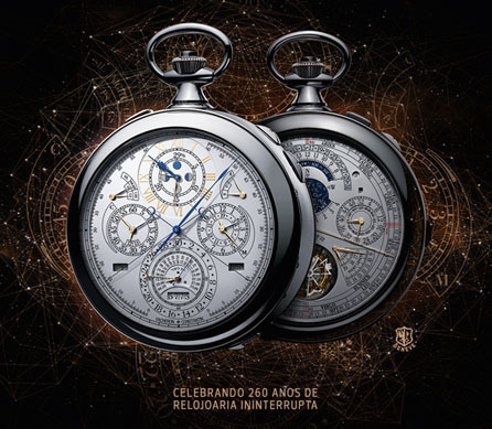 Comemorando os 260 anos no dia de hoje, a Vacheron Constantin apresenta o relógio mais complicado fabricado pela marca. Uma peça feita sob medida e encomendada pelo Atelier Cabinotiers para um colecionador, oferece 57 funções como múltiplos calendários, diversos tons e formas de alarme, e o charme de um Vacheron Constantin no bolso, na mão e onde você quiser usar! Quem nos contou a novidade foi o Glamurama. Uma obra de arte.