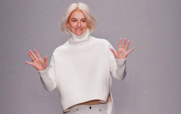 A estilista francesa Vanessa Bruno no fechamento do seu último desfile, na temporada Inverno 2015 prêt-à-porter (Foto: Reprodução)