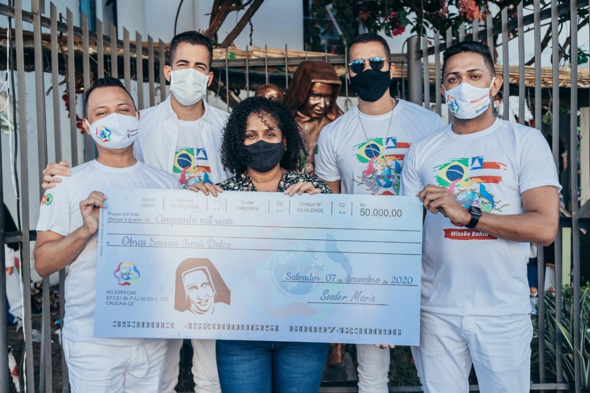 "Sabemos da influência que os artistas têm no seu público, então, sempre que é para fazer o bem, aceitamos na hora, sabendo que podemos impactar positivamente nossos fãs", destacou Rafa Marques. Ele fez a entrega do cheque simbólico ao lado do irmão, Pipo Marques, que celebrou a doação. "Ficamos muito honrados com o convite, ainda mais sendo para a doação às Obras Sociais Irmã Dulce, um exemplo baiano tão importante e representativo", disse.